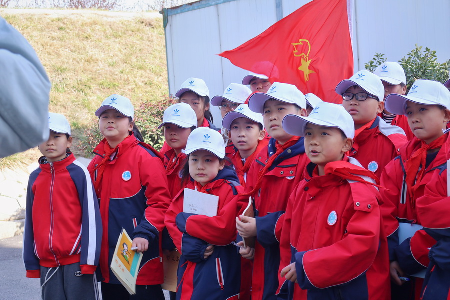 小學生在渠道旁聽長葛管理處工作人員講解南水北調知識